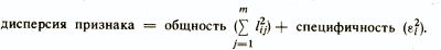 которое должно выполняться, чтобы задача не вырождалась в тривиальную. Данное неравенство получается на основании подсчета степеней свободы, имеющихся в задаче /Лоули Д. и др., 1967/. Сумму квадратов нагрузок в формуле основной модели факторного анализа называют общностью соответствующего признака xi и чем больше это значение, тем лучше описывается признак xi выделенными факторами fj. Общность есть часть дисперсии признака, которую объясняют факторы. В свою очередь, ε2i показывает, какая часть дисперсии исходного признака остается необъясненной при используемом наборе факторов и данную величину называют специфичностью признака. Таким образом,
