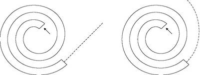 1. На рисунке изображена свернутая трубка, лежащая на столе. Шарикоподшипник влетает в один конец трубки и вылетает из другого. Покажите пальцем путь шарикоподшипника по трубке и после того, как он вылетит из нее.