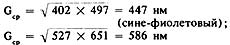 Так как желто-зеленый — противоположный фиолетовому, следовательно, из результата надо вычесть длину волны, равную д/ф для этой пары противоположных цветов, или: 559 нм — — 132 нм = 427 нм (фиолетовый). Значения корня квадратного из крайнего значения длины волны спектра, что соответствует разности между длинами волн противоположных цветов, видны на рисунке 129. Так, для пары противоположных цветов «фиолетовый — зелено-желтый» эта разность равна: 558 нм — — 426 нм = 132 нм. Аналогичным образом находятся все остальные разности противоположных пар. Пурпурный цвет получается в результате вычитательного смешения красного и фиолетового: