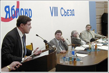 Вот пример. Три фотографии с VIII съезда партии «Яблоко». Посмотрите, как меняются позы и жесты слушателей в зависимости от выступления докладчика.