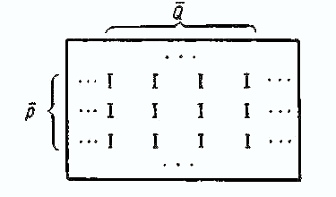 Назовем блоком в таком графе пару подмножеств P и Q таких, что для всякого Рi принадлежащего P, образ qj из Q имеет прообразом все подмножество P, т. е. из каждой вершины Р имеется ребро ко всякой вершине Q. Если соответствующие строки P и столбцы Q в матрице |R| сгруппировать рядом, то получится прямоугольник (блок) из клеток, содержащих только единицы (табл. 2).