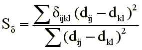 Известны три подхода к шкалированию: линейный, нелинейный и неметрический. Линейный подход, предложенный Торгерсоном [9], основан на ортогональном проектировании в подпространство, образованное направлениями, характеризующимися значительным разбросом точек. Такое решение дает maxеd2jk при ортогональном проектировании.В нелинейном случае [1, 7, 11] пытаются найти отображение D ® d, которое бы минимально искажало исходные различия Djk. Вводится критерий качества отображения, называемый «стрессом» и измеряющий степень расхождения между исходными различиями Djk и результирующими расстояниями djk. С помощью аппарата нелинейной оптимизации ищется конфигурация точек, которая давала бы минимальное значение «стрессу». Значения координат этих точек и являются решением задачи. В качестве «стресса» используются разные виды функционалов, в простейшем случае