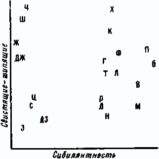 пространство. 1-я ось (рис. 2) делит все согласные на сибилянты