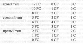 Цветовой тип — это распределение показателей цвета. При «левом» типе преобладают FC, при «среднем» — CF и при «правом» — С. Приводим примеры Бома [98]: